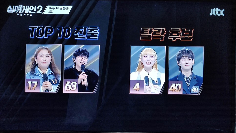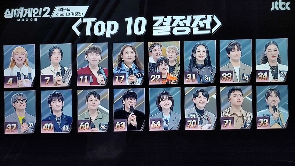 | 싱어게인2 TOP 10 결정전 2조 33호 64호 TOP 10으로 결승전 진출 (0) | 2022.01.25 |
