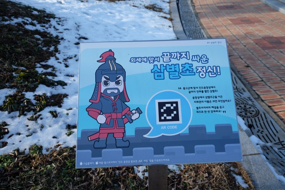 스마트폰 앱을 다운로드해서 진도 용장성 홍보관 AR 체험을 할 수 있는 곳입니다.