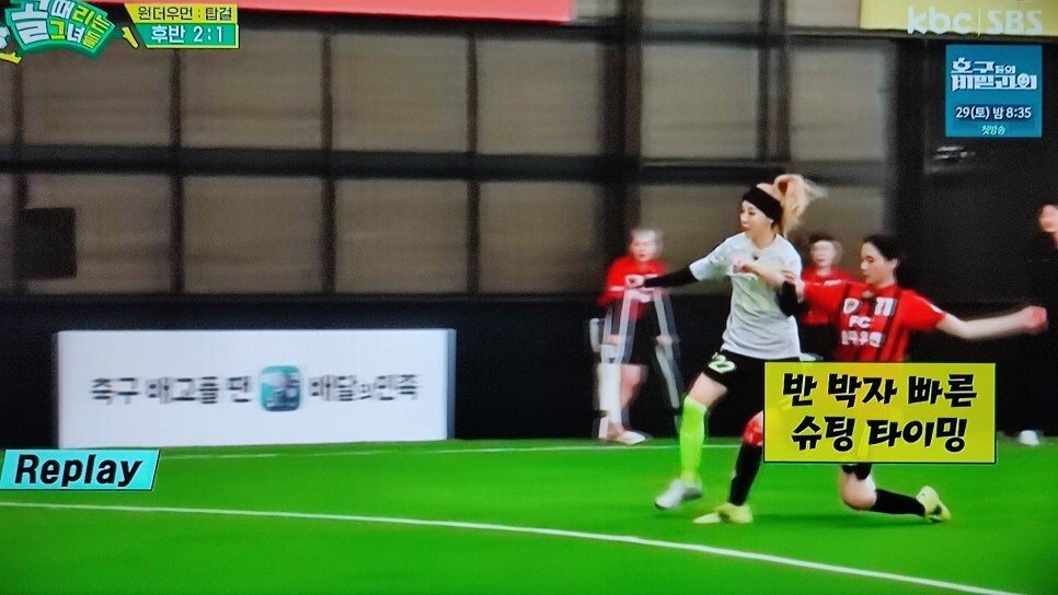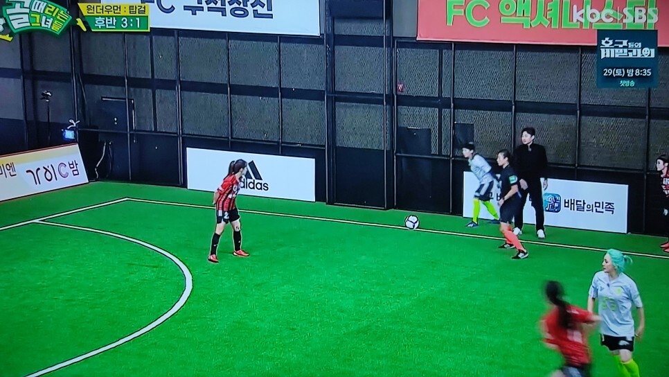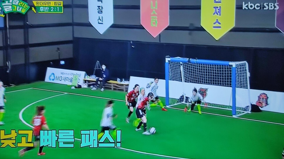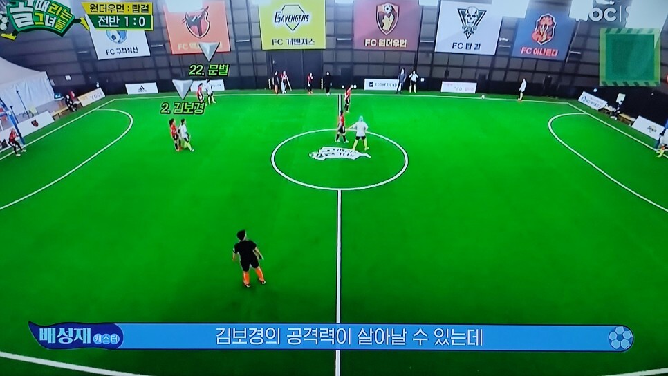 원더우먼 김희정이 탑골 김보경을 밀착해서 마크를 해주기 때문에 공격이 살아나지 않는 상황인데