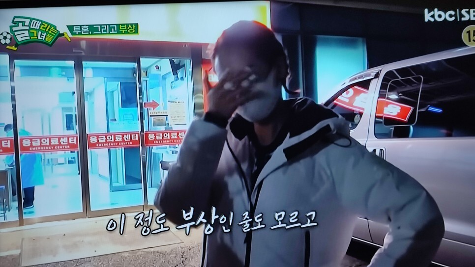 황소윤과 김보경이 부딪쳐 김보경 코에 맞아 얼얼한 상태