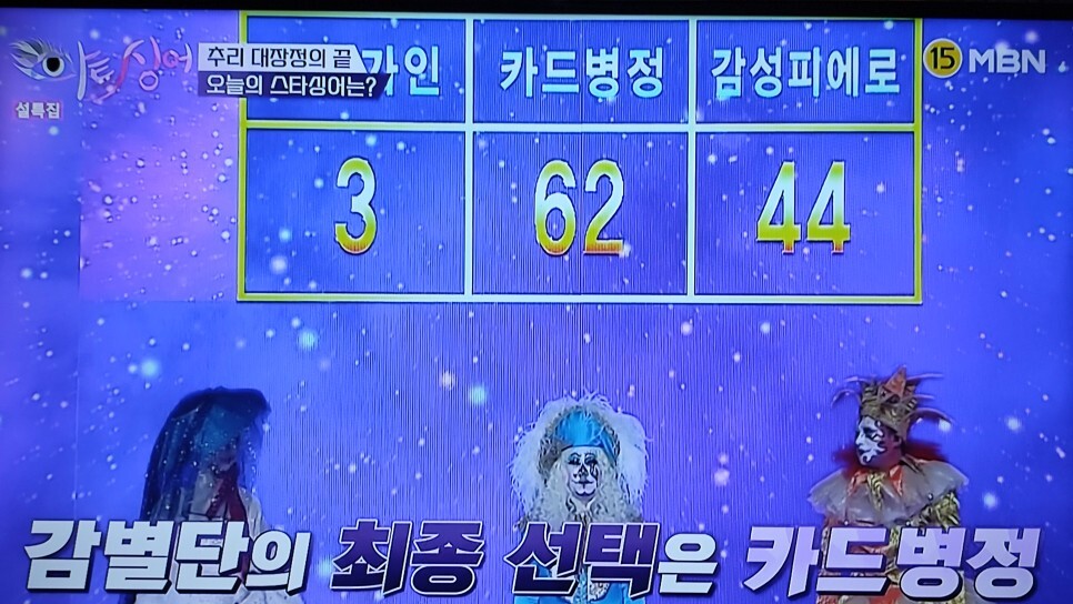 1번 금빛가인 2번 카드병정 3번 감성삐에로