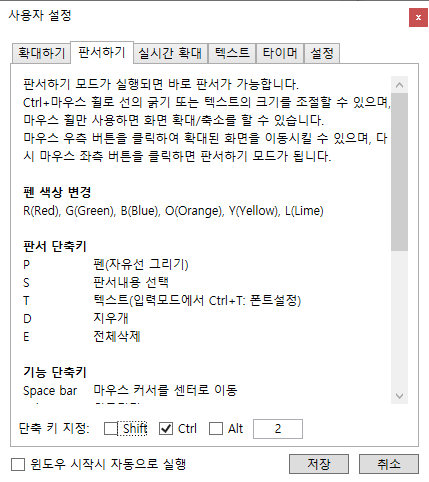 Ctrl+2 : 판서모드(종료: 화면이동 상태에서 마우스 우클릭 or ESC)