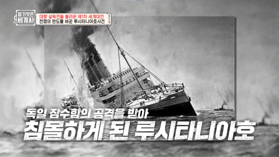 독일 잠수함의 공격을 받아 침몰하게 된 루시타니아호