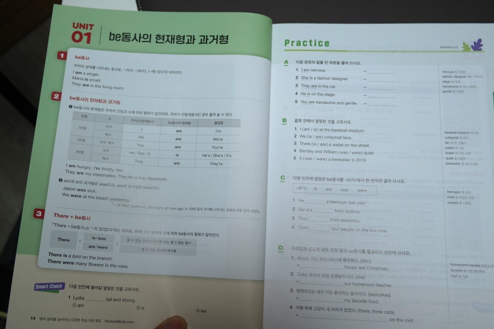 핵심을 체크할 수 있는 Smart Check, 문장을 연습할 수 있는 Practice, 직접 써보면서 문법을 연습할 수 있는 Write Exercise, 마지막 챕터 테스트로 챕터에서 배운 내용을 종합해서 문제를 풀 수 있도록 꾸며져 있습니다.