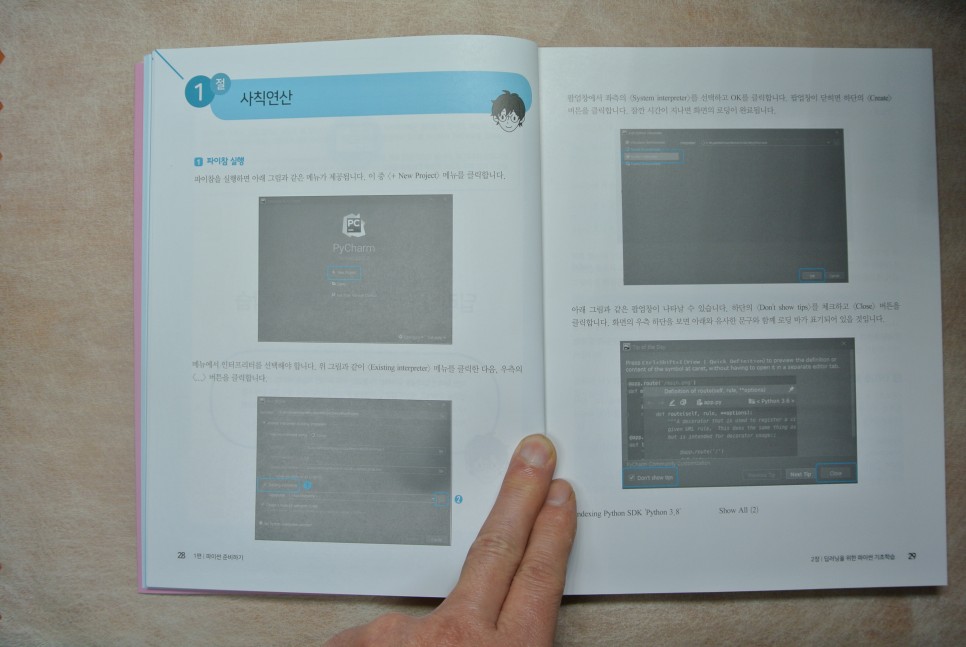 책은 1편에서 파이선 코딩하는데 필요한 프로그램을 설치해 보도록 하고요.
