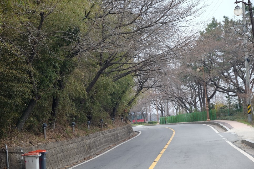 길을 따라 조금 올라가면 이렇게 벚꽃 나무가 길 좌우에 있습니다.