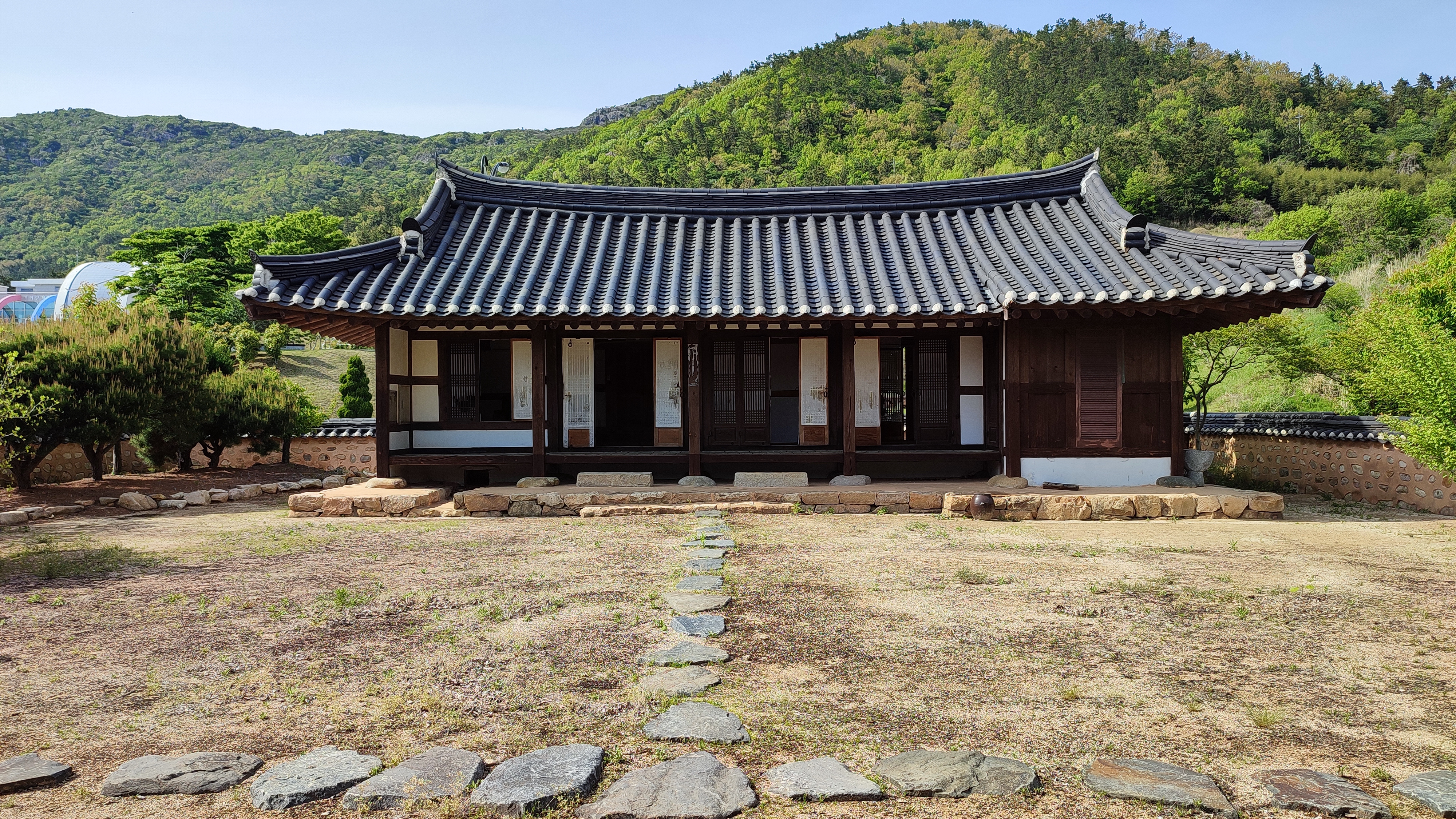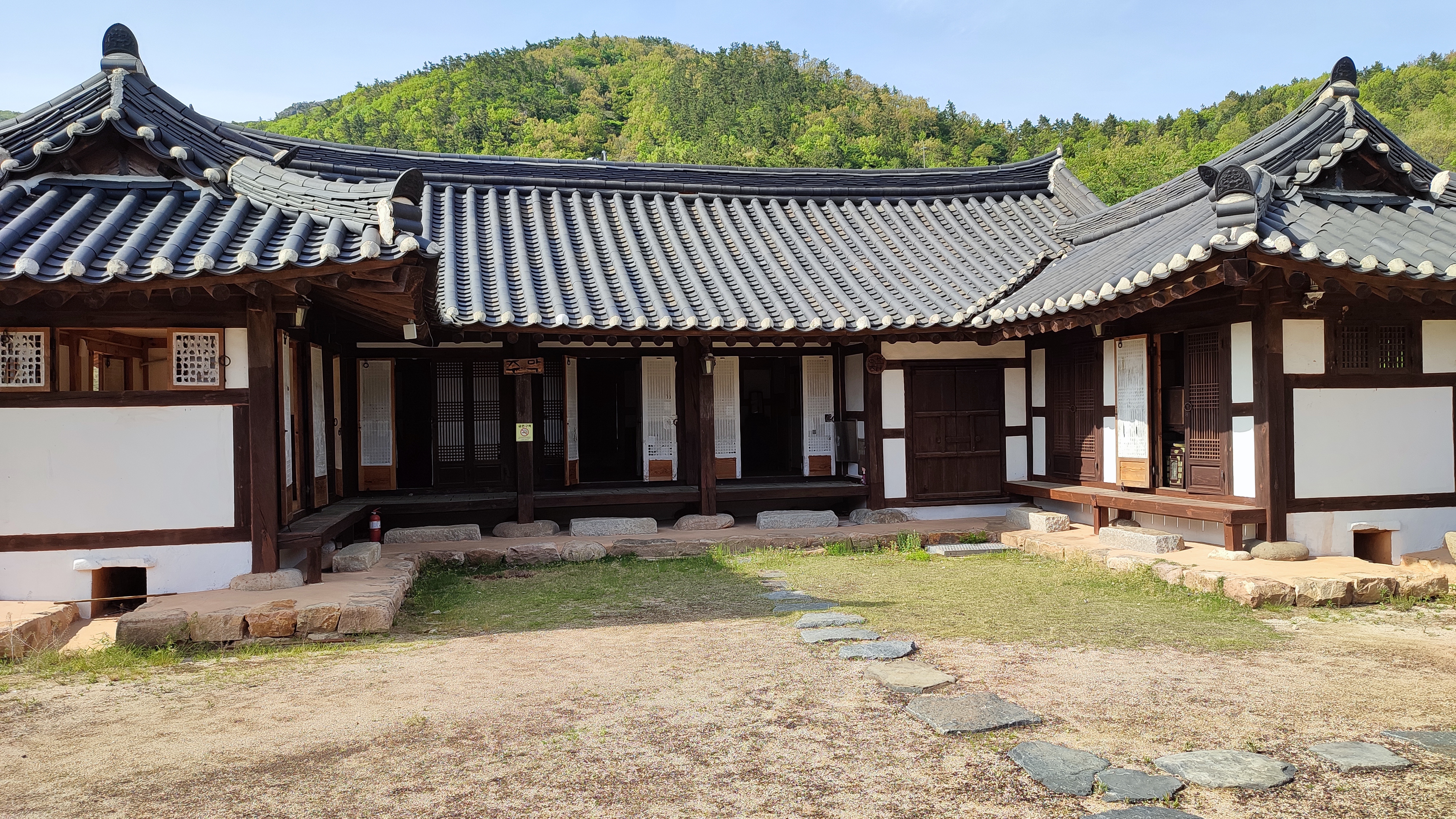 뒤로는 산을 등지고 있고 앞으로 물이 흐르는 배산임수 지형입니다.