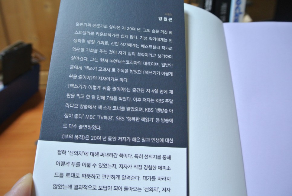 오늘은 양원근씨가 쓴 부의 품격이란 책을 포스팅해 보려고 합니다.