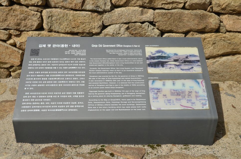 김제 옛 관아는 조선시대 지방행정의 치소로서 도시의 가장 중심이 되는 곳에 동헌과 내아가 함께 보존되어 있다는 점에서 매우 드문 사례이다.