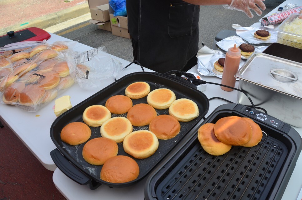 패티는 집에서 요리를 해와서 그릴에서 살짝 데워서 햄배거를 만들어 판매하고 계시는데요.