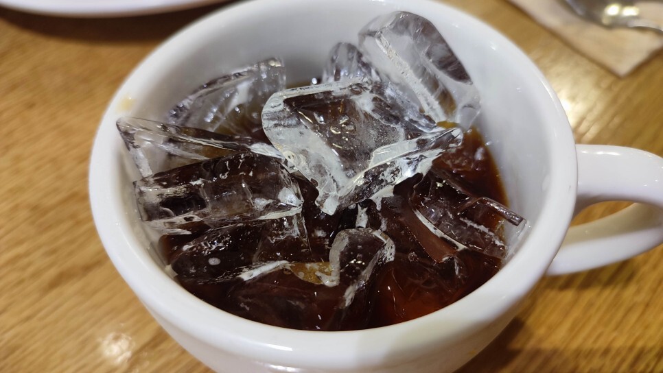 여기에 음료 코너에서 얼음을 리필해서 아이스 아메리카노를 만들었습니다.