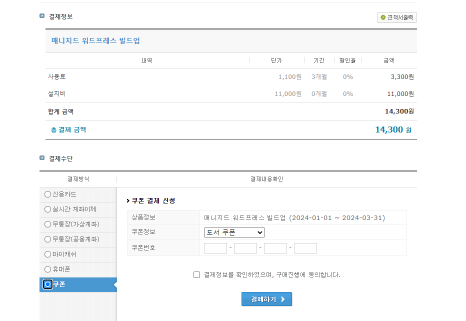 그리고 이 책에서 제공하는 쿠폰을 통해 카페24 호스팅을 3개월 동안 무료로 사용할 수 있는데요.