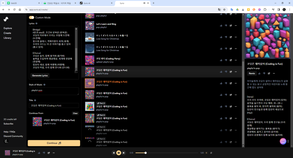 한국어로 입력하면 k-pop 형태로 노래를 만들어 주는데요.