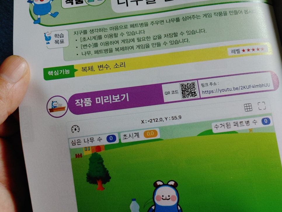 엔트리를 이용해서 인공지능 프로그램까지 직접 작품을 만들면서 배우는 코딩 교재인데요.