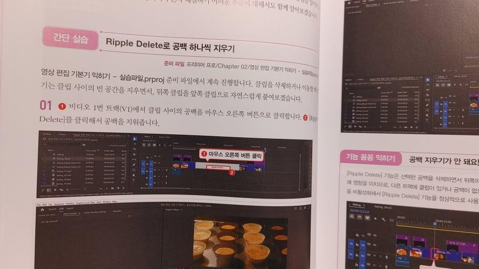 프리미어 프로 & 애프터 이펙트 CC2025 에서는 간단한 실습으로 프로그램 사용법을 익히고, 중간 중간에 기능 꼼꼼 익히기도 있어서 좀 더 깊은 내용을 학습하도록 설명해 주고 있습니다.