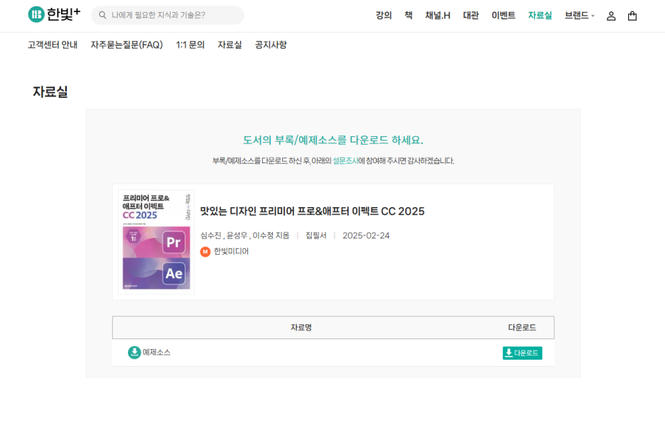한빛미디어의 프리미어 프로 & 애프터 이펙트 CC2025 는 예제 파일도 제공해 주기 때문에 혼자서 책을 따라 학습해가면서 자연스럽게 사용법을 익히게 되는데요.