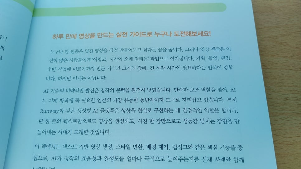 이번 시간에는 한빛미디어에서 출간한 AI로 하루 만에 영상 만들기 with 런웨이 책을 통해 인공지능을 통한 영상과 이미지 만들기를 정리해 보려고 합니다.