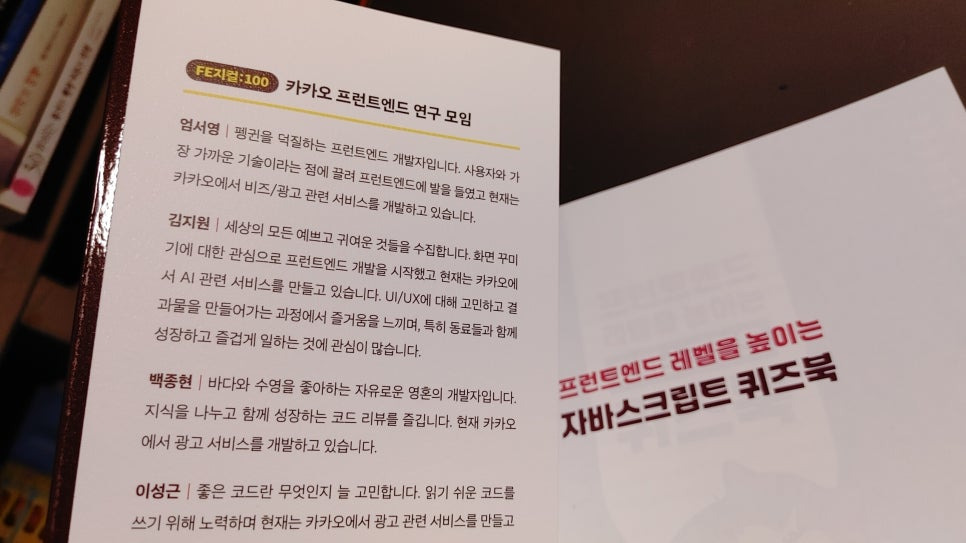 이분들은 카카오 프런트엔드 연구 모임의 회원들입니다.