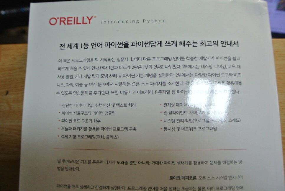 오늘 소개할 책은 빌 루바노빅의 Introducing Python 인데요.