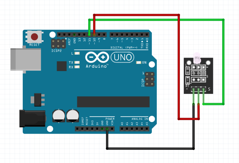 이 모듈을 사용할 때 LED가 너무 밝거나 뜨거워진다면 아두이노 핀과 LED 사이에 220옴 저항을 하나씩 달아주는 것이 안전합니다.