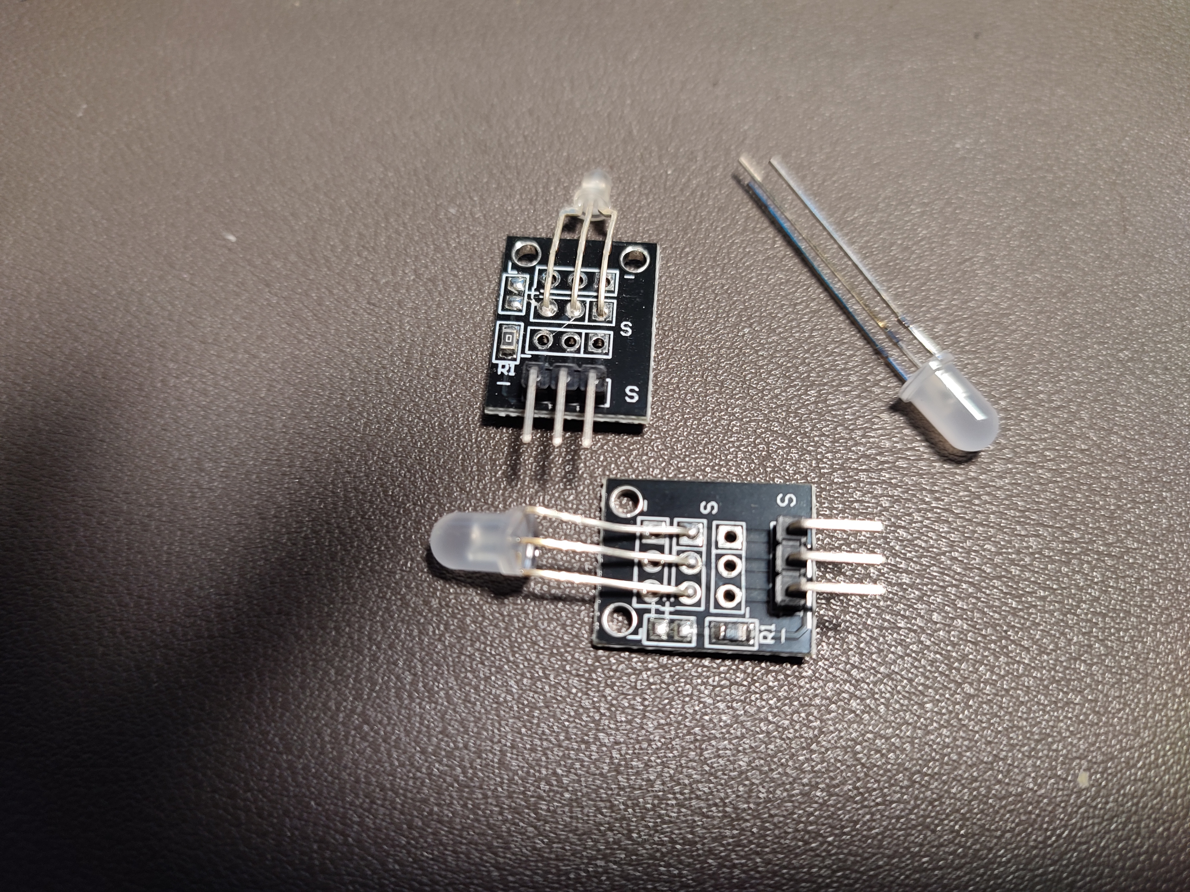 빨간색과 녹색 LED가 포함된 LED 모듈입니다. 이 두 LED는 공통 캐소드를 통해 서로 연결되어 있습니다.