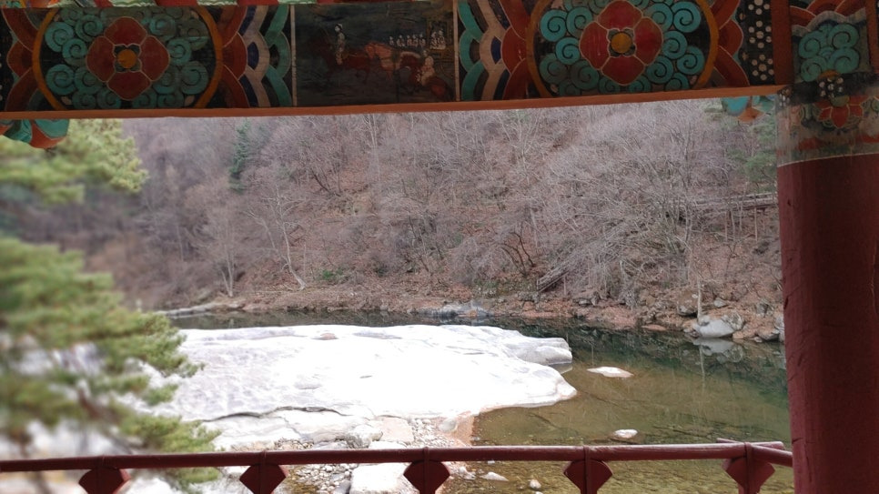 동호정 바로 앞에는 너럭바위인 차일암이 넓게 펼쳐져 있고, 그 아래로는 옥빛 물결이 깊은 담소를 이루는 옥녀담이 흐릅니다. 짙푸른 숲이 계곡을 감싸고, 그 사이를 여유롭게 흐르는 물줄기는 보는 이로 하여금 절로 마음의 평화를 느끼게 합니다. 특히 너럭바위와 깊은 담소의 조화는 그림 같은 풍경을 연출하며, 자연이 빚어낸 예술 작품과도 같습니다.