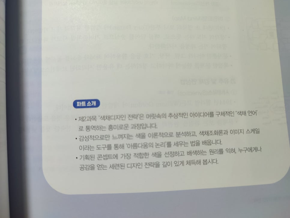 시험 과목은 색채디자인 계획, 색채디자인 전략, 조색 및 색채관리, 색채디자인 제작으로 4과목을 시험 보게 됩니다.