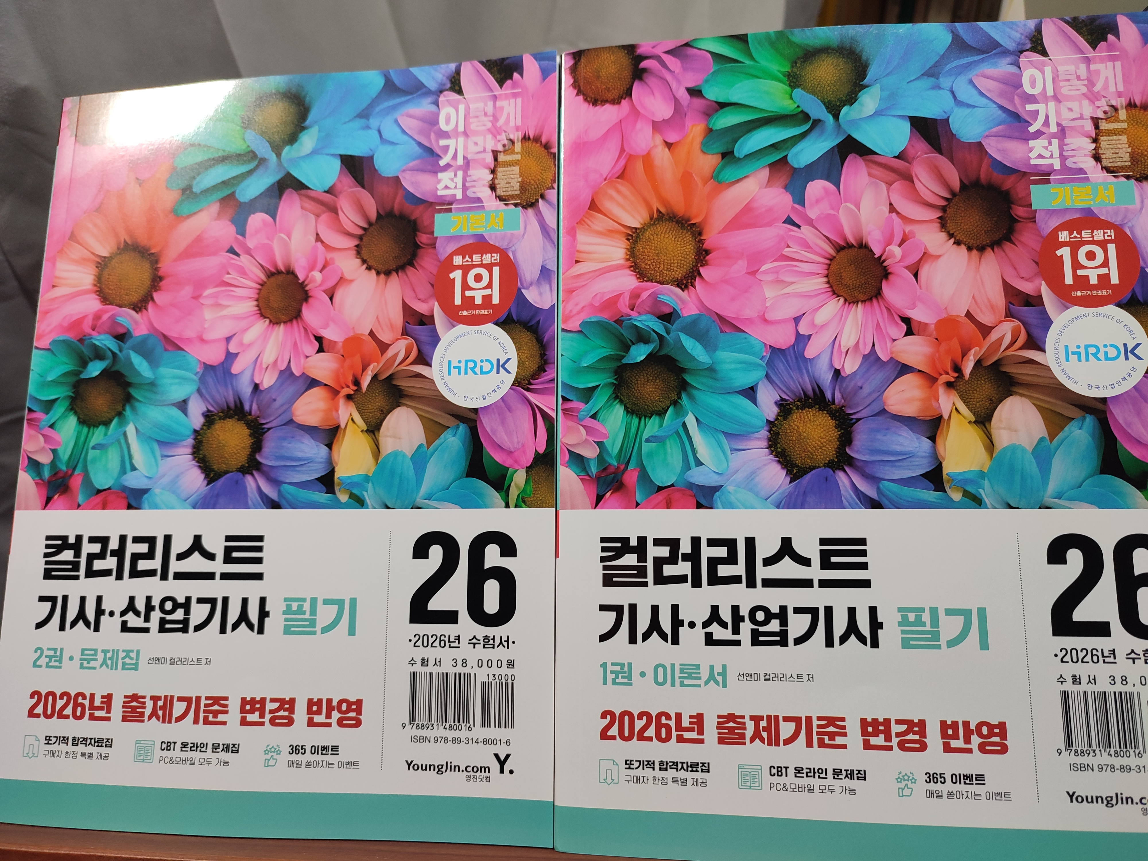 참고할 책은 영진닷컴에서 출판한 컬러리스트 기사 산업기사 필기와 문제집으로 2권으로 나뉘어져 있습니다.