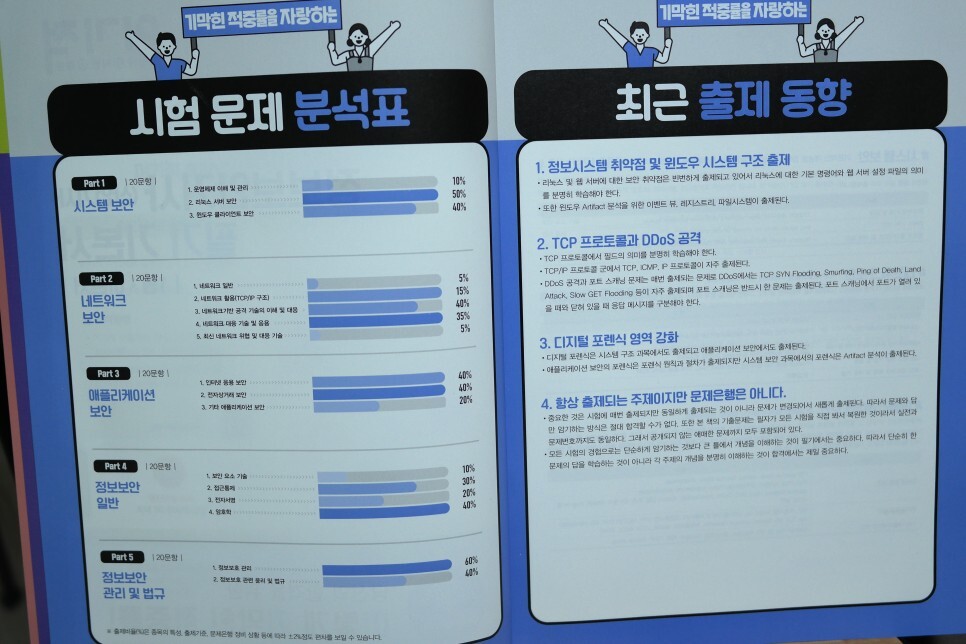 책 앞부분에서 시험 문제 출제 분석표가 나와 있습니다.